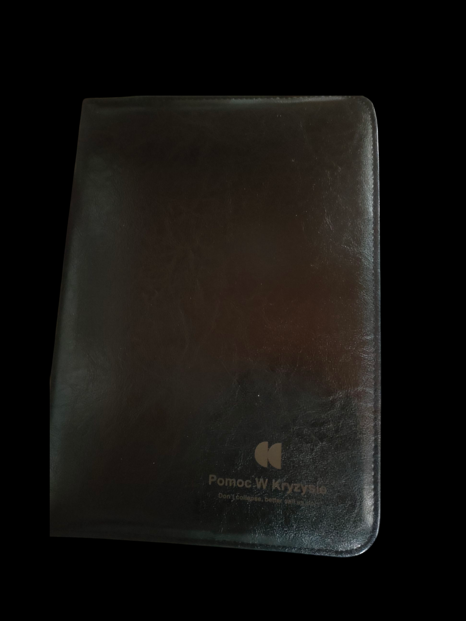 **Teczka z Ekoskóry w Kolorze Czarnym z Logotypem "Pomoc w Kryzysie"**